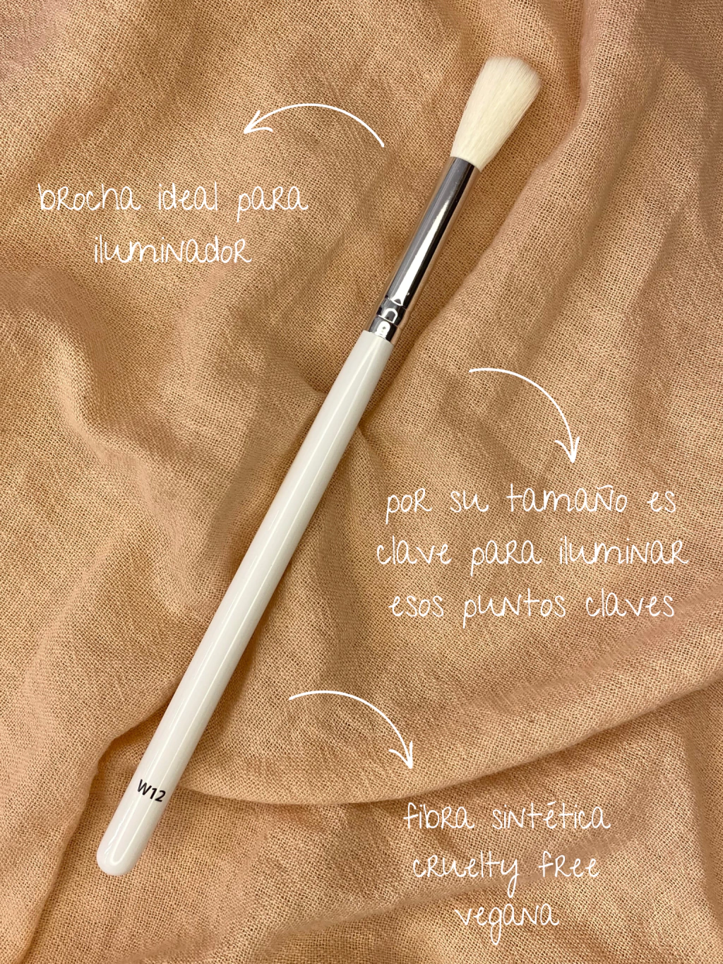 El pincel W12 es ideal para aplicar iluminador de forma precisa y delicada.